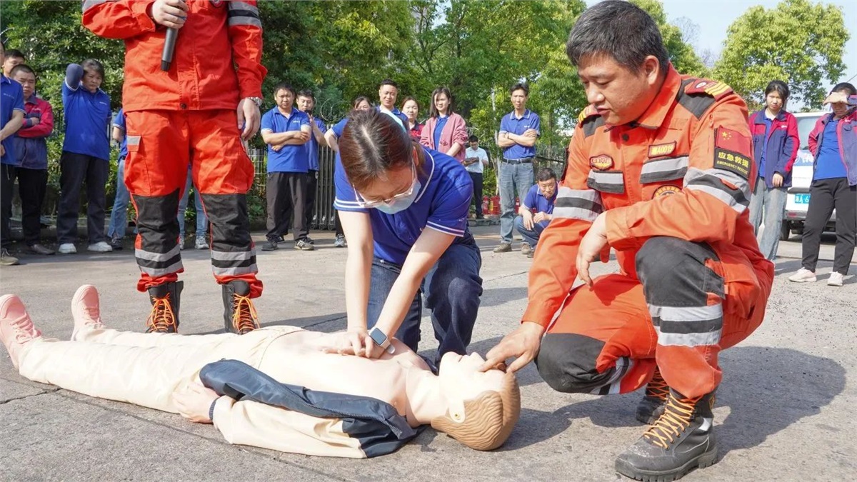 隨后,在現(xiàn)場設(shè)置的模擬“起火點”,大家有序排隊進(jìn)行了滅火器實操演練,以確保每位員工都能正確掌握滅火器的使用方法。同時,現(xiàn)場也模擬了心肺復(fù)蘇(CPR)急救和有限空間作業(yè)應(yīng)急救援等場景,完整呈現(xiàn)了“火災(zāi)發(fā)生—緊急疏散—現(xiàn)場救援—120轉(zhuǎn)運(yùn)”的全流程,整個實操演練過程組織嚴(yán)密、分工明確,達(dá)到了既定的演練目標(biāo)和成效。