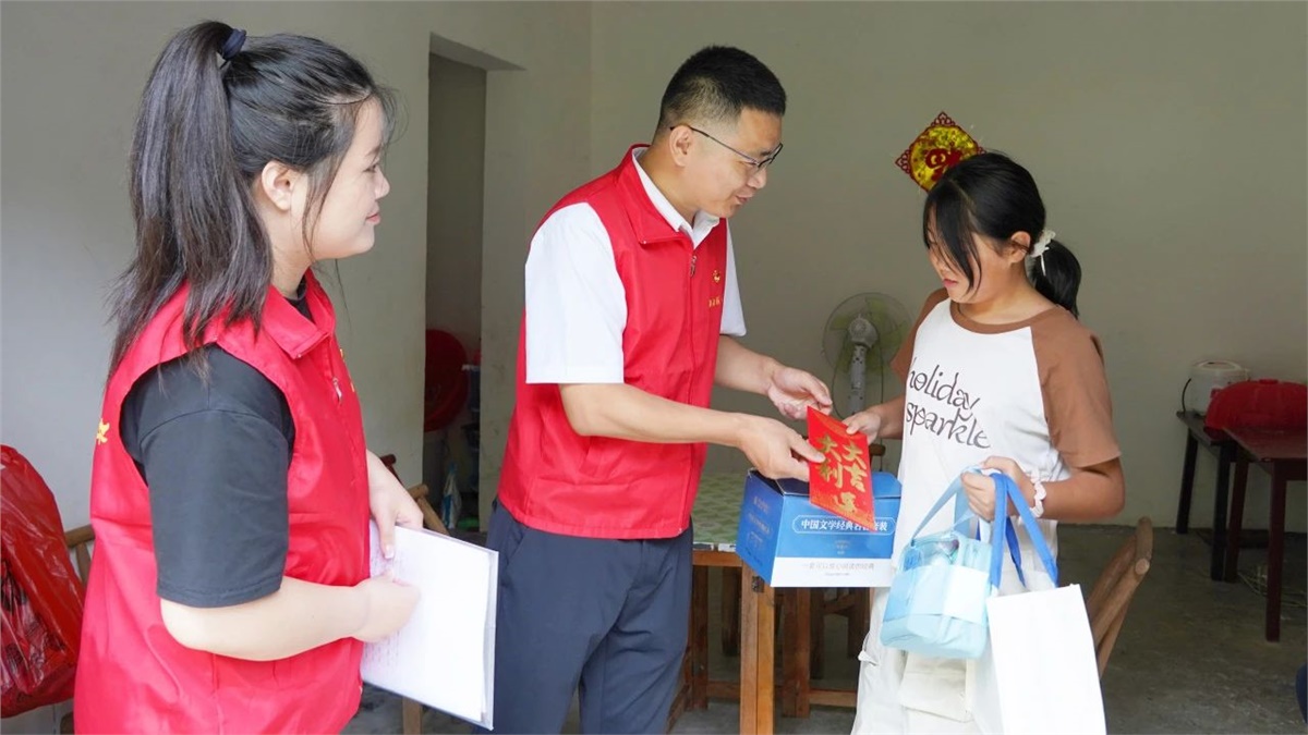 龍山縣苗兒灘鎮總面積219.6平方公里,人口31868人,轄18個村(社區),曾是國家級貧困縣重點鄉鎮,大部分家庭收入主要依賴農業或外出務工,經濟來源相對單一,再加之部分家庭因為家庭成員患病,又或者父母離異、單親、監護人缺失等情況,一些孩子在成長過程中難以得到充足的生活物資和教育資源。2017年起,瀏陽經濟技術開發區對口幫扶該鎮開展脫貧攻堅。