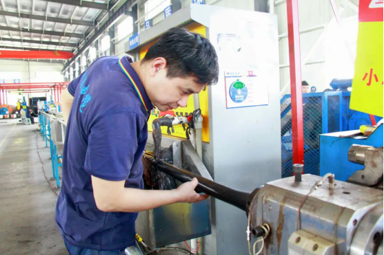 與其他組裝式的產(chǎn)品不同,后期檢查出現(xiàn)質(zhì)量問(wèn)題,可以拆開(kāi)重裝或更換零件,電纜的生產(chǎn)制造任何一個(gè)部件或工藝工序沒(méi)有達(dá)標(biāo),后期是無(wú)法挽回和彌補(bǔ)的。因此,電纜生產(chǎn)線上的每一個(gè)操作者都是關(guān)鍵人物。作為機(jī)組組長(zhǎng)的劉學(xué)文,深知自己肩上的重任,一旦進(jìn)入車間,他便絲毫不敢懈怠,總是在生產(chǎn)線之間來(lái)回走動(dòng),反復(fù)查看機(jī)器設(shè)備的運(yùn)轉(zhuǎn)情況、第一時(shí)間查看電纜成品質(zhì)量,快速發(fā)現(xiàn)問(wèn)題,解決問(wèn)題,避免不良品流入下一道工序,不僅保障了電纜質(zhì)量,而且有效提高了電纜的生產(chǎn)效率。