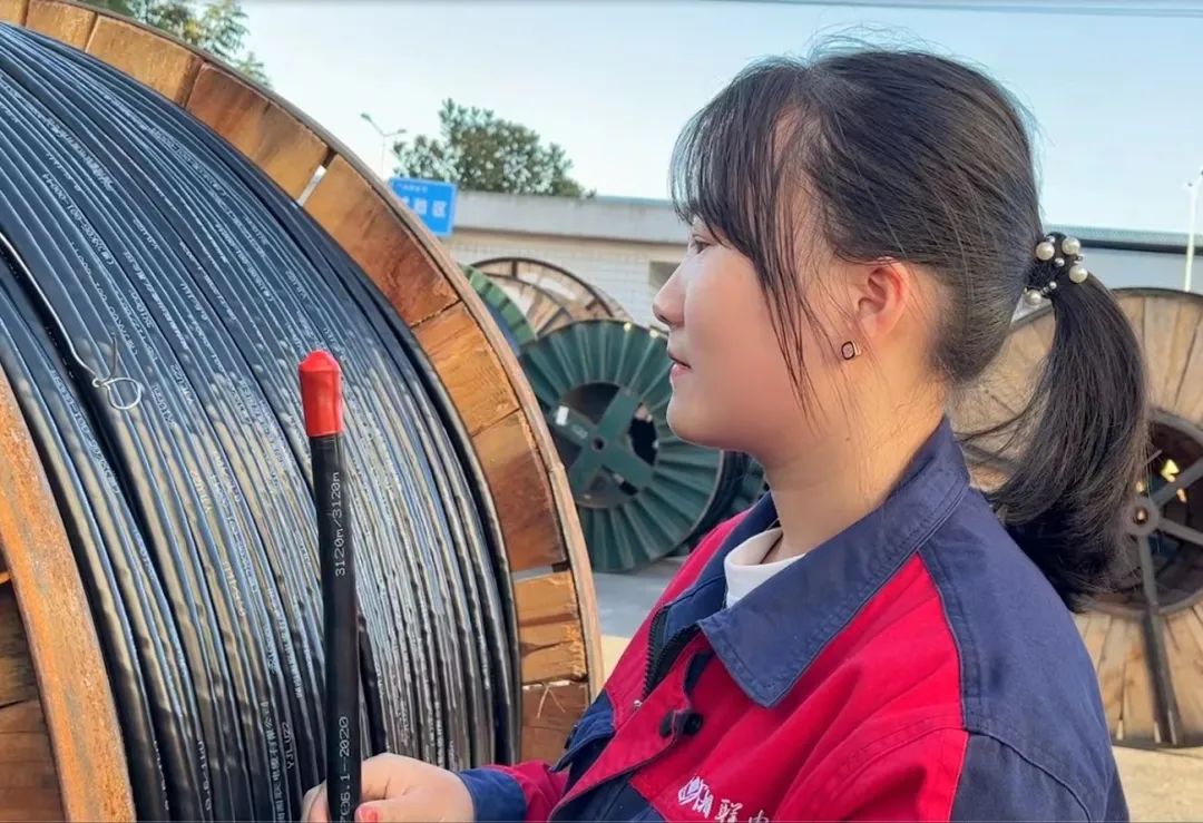▲楊祁矞正在為客戶檢查電纜生產情況