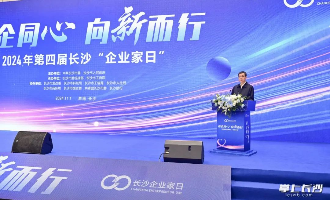 ▲周海兵出席2024年第四屆長沙“企業家日”活動并講話