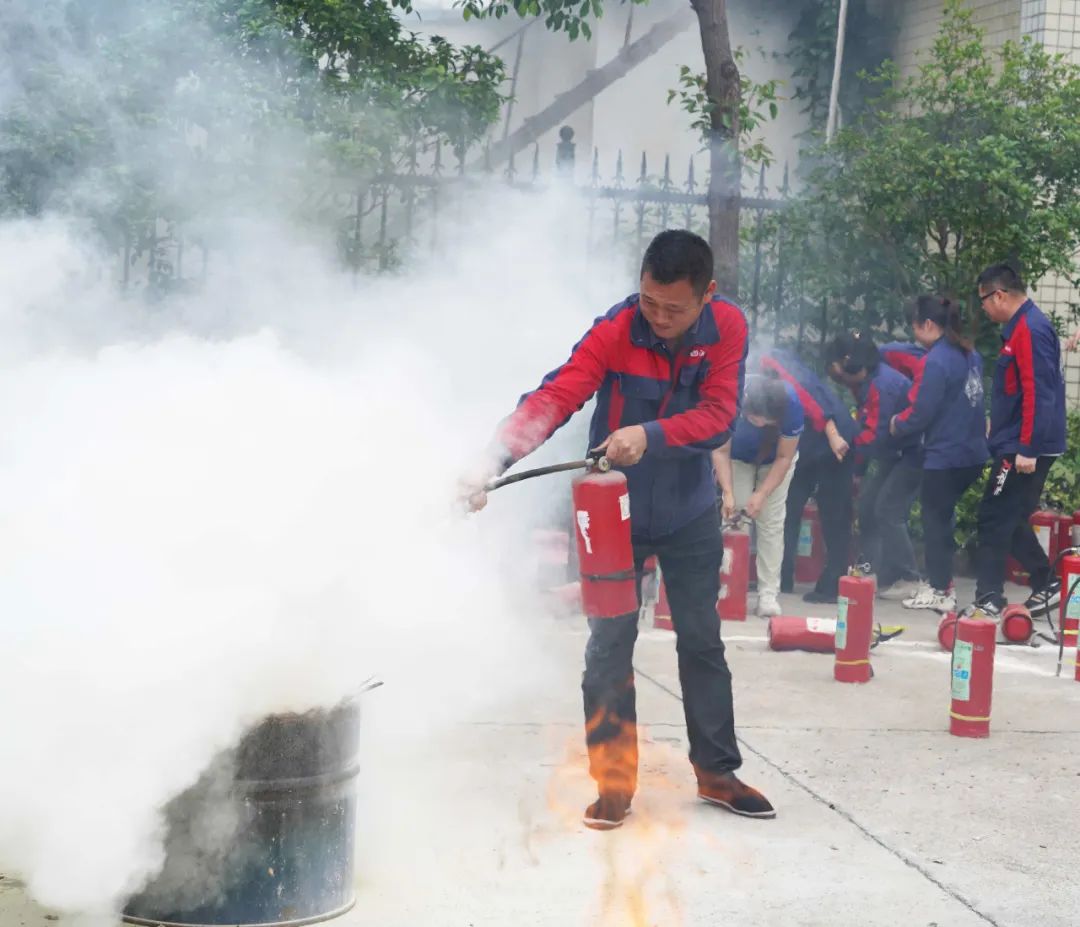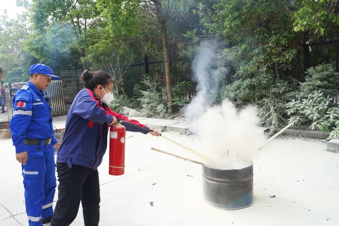本次演練以實操為主,為確保所有員工具備基本消防能力,每一位員工都在專業消防隊員的指導下,完成了使用滅火器撲滅火堆、消防水槍對接等實際操作,切實增強員工的自防自救能力。