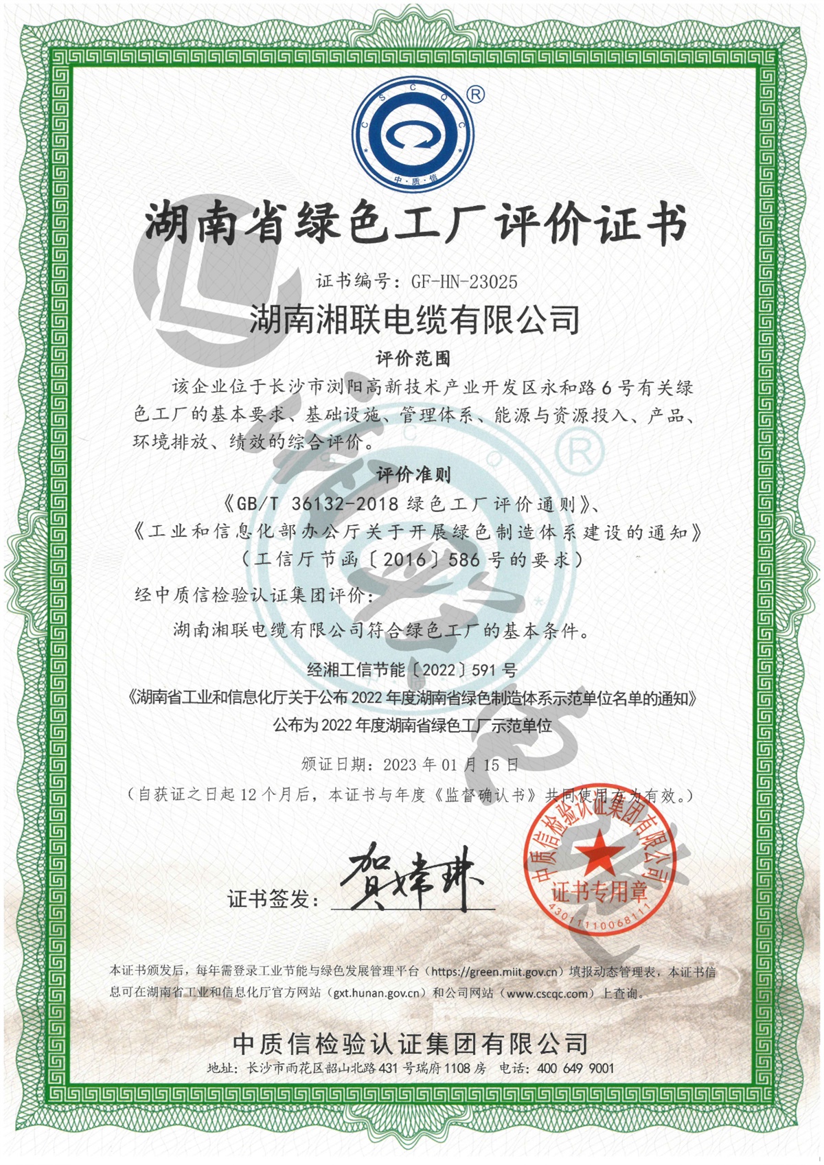 1月,湖南省工信廳公示了2023年湖南省綠色制造體系示范單位名單,湘聯電纜憑借綠色完善的體制機制獲評湖南省省級“綠色工廠”稱號。