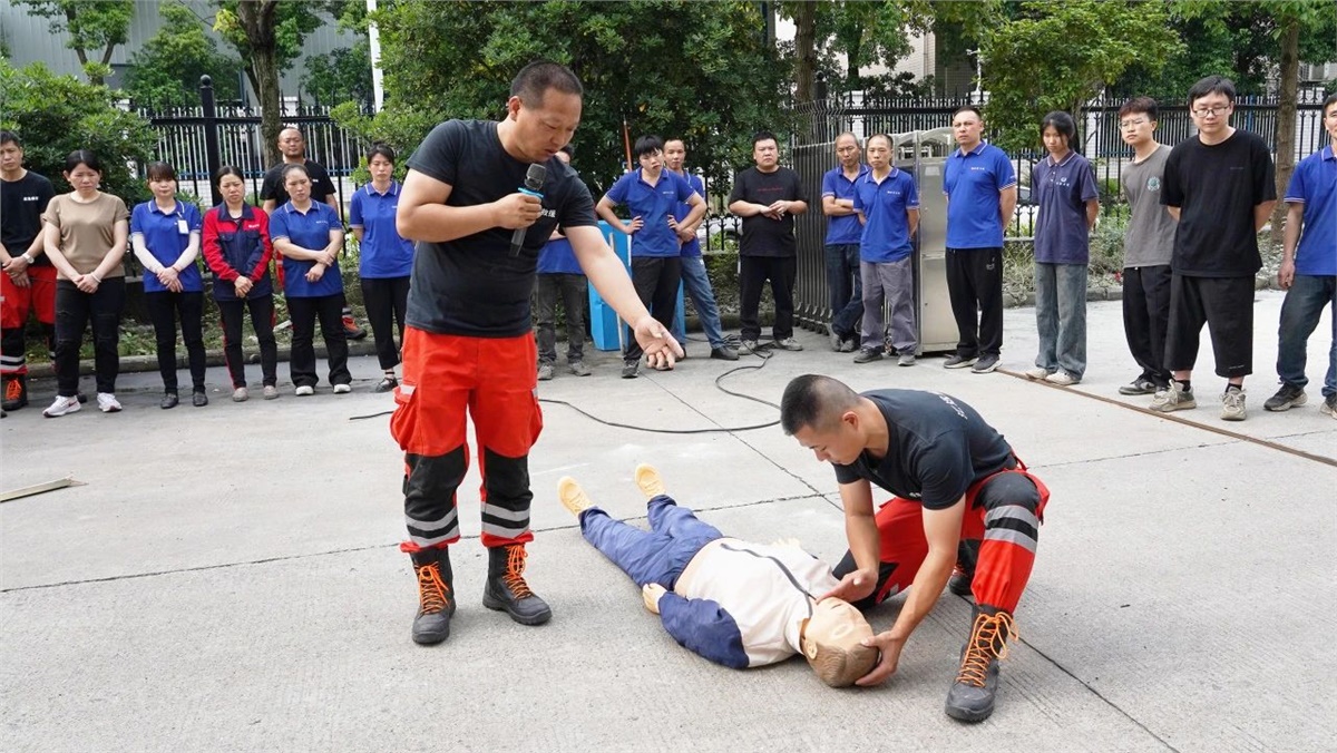 為了應對生產(chǎn)過程中可能發(fā)生的觸電、漏電等意外傷害事故,本次消防演練還安排了觸電應急演練,消防教員從截斷電源、脫離電源、心肺復蘇急救三個方面為大家培訓了科學有效的應對方法,實用性強,真正提升了大家對觸電等事故的應急能力。