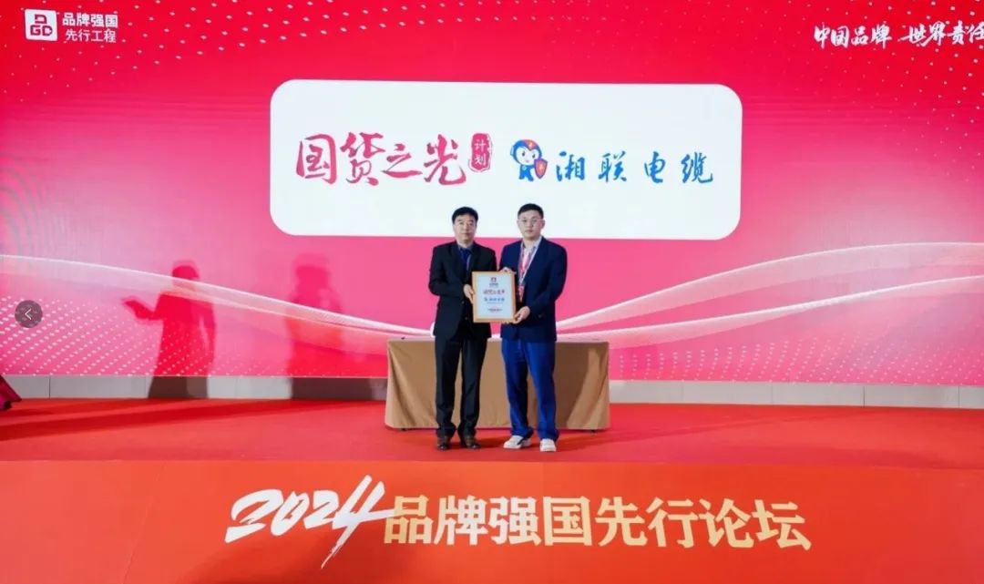 二月,以“凝聚先行力量,啟航星辰大?!睘橹黝}的2024第四屆品牌強國先行論壇在佛山三龍灣舉行,憑借著消費者的良好口碑和行業內的高度認可,湘聯電纜成功入選品牌強國“國貨之光”培育工程。